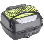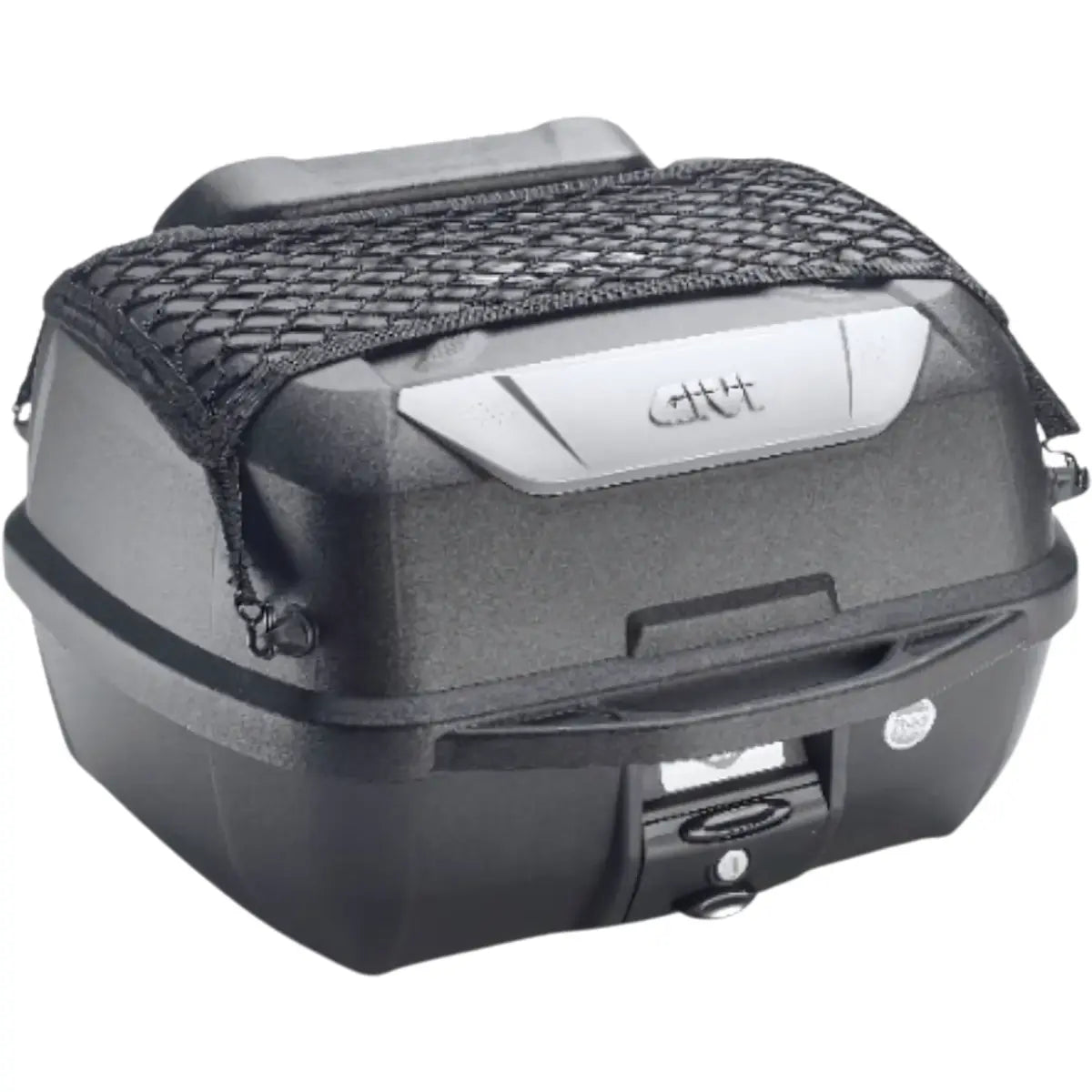 Fabricado em polipropileno de alta resistência, o GIVI E43NBR apresenta um acabamento em preto fosco com detalhes em prata escovado, conferindo um visual moderno e discreto. Seu design funcional inclui uma rede elástica externa para fixação rápida de objetos e um encosto acolchoado integrado, proporcionando maior conforto ao passageiro.
