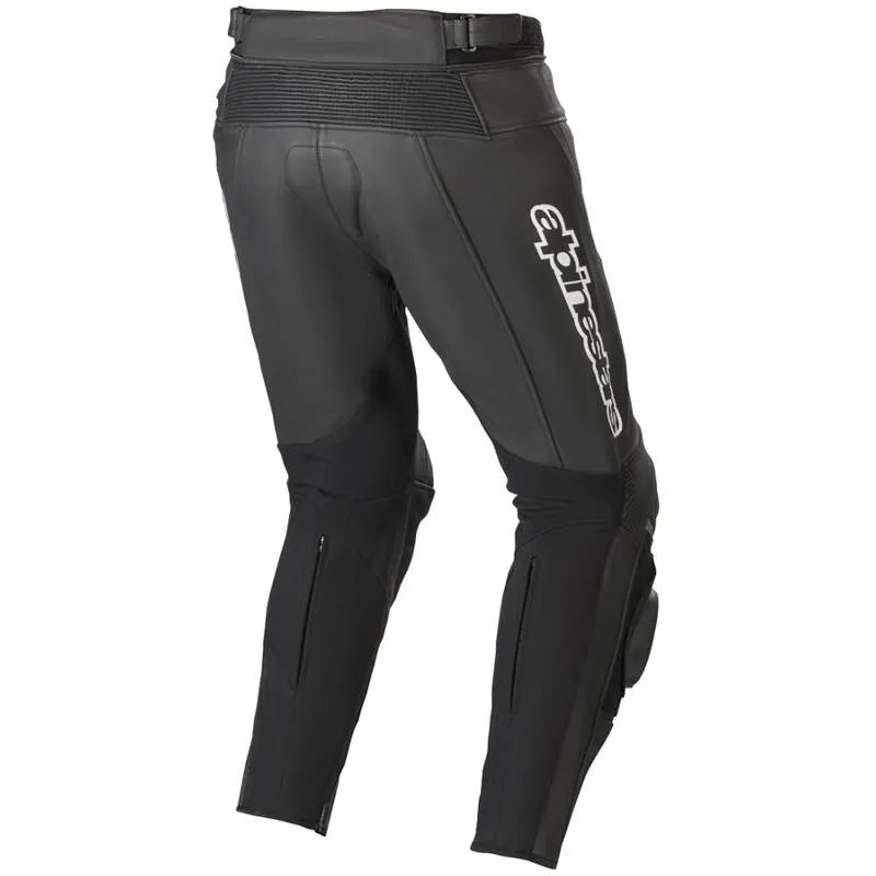 A Calça de Couro Track V2 com certificação CE da Alpinestars é extremamente confortável e versátil para uso em pista e rua.