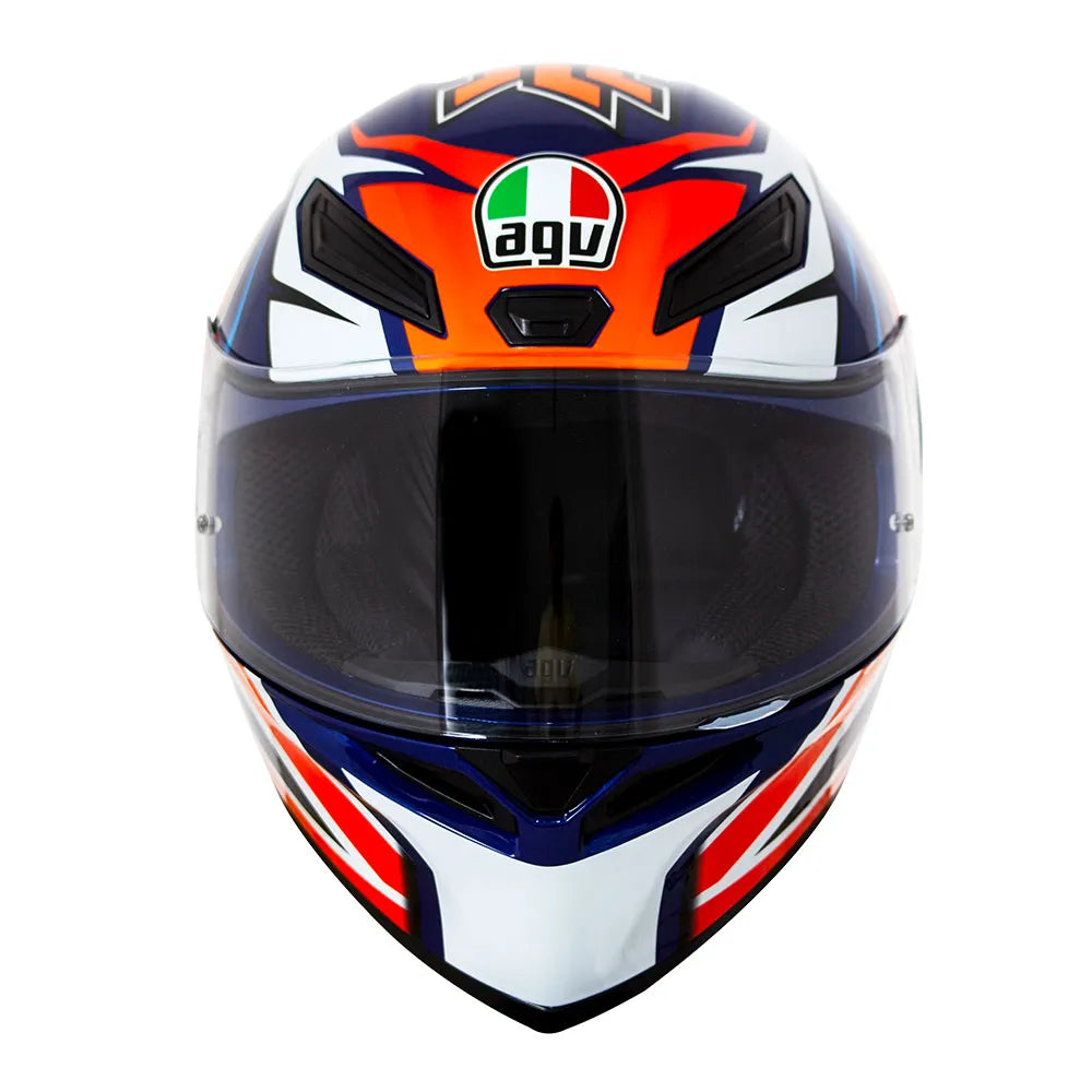 Projeto inovador com design moderno herdado de muitas temporadas vitoriosas. Este é o novo AGV K1, inspirado no Pista GP R para atender ao seu dia a dia, com spoiler otimizado em posição racing, sistema de ventilação multicanais integrado ao EPS e viseira com amplo campo de visão, preparada para película antiembaçante Pinlock.