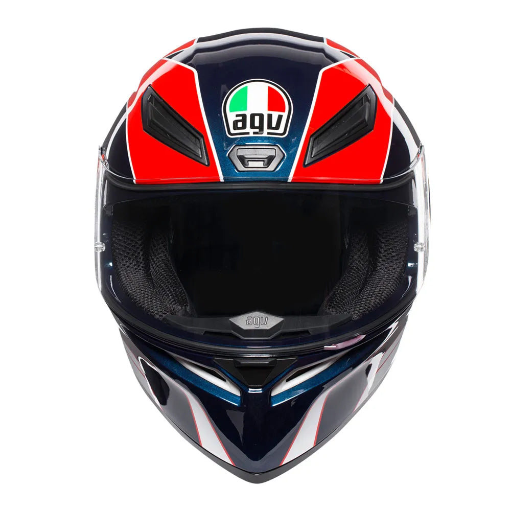 Projeto inovador com design moderno herdado de muitas temporadas vitoriosas. Este é o novo AGV K1, inspirado no Pista GP R para atender ao seu dia a dia, com spoiler otimizado em posição racing, sistema de ventilação multicanais integrado ao EPS e viseira com amplo campo de visão, preparada para película antiembaçante Pinlock.