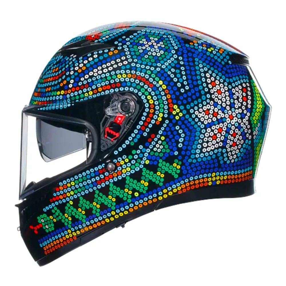 Devido ao protocolo de construção AGV Extreme Safety, o K3 atende aos requisitos dos mais recentes padrões internacionais e muito mais. Oferece segurança do mais alto nível ao condutor e obedece aos padrões da rigorosa homologação ECE22. O perfil aerodinâmico do K3 foi projetado para atingir um peso dinâmico zero a uma velocidade de cruzeiro de 130 km/h. Significa menos peso e menos tensão nos músculos do pescoço, para máxima concentração na condução.