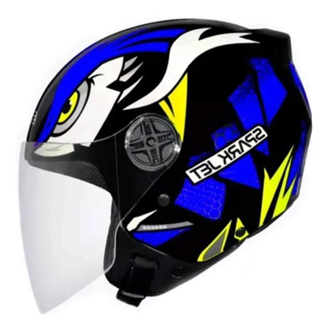 O casco altamente confortável, em cores modernas e com design agressivos faz parte da linha Spark Jet Dragon a mais adequada para os pilotos que sabem curtir a vida e sua moto. O capacete apresenta uma viseira resistente em dupla curvatura, não destorcendo sua visão e de fácil troca. Especificações: • Tamanho: 56 a 62 • Linha: Spark Jet Dragon • Cor: Preto e Azul • Certificado pelo INMETRO Conteúdo da Embalagem: – 01 Capacete Preto e Azul Spark Jet Dragon Viseira Cristal – EBF
