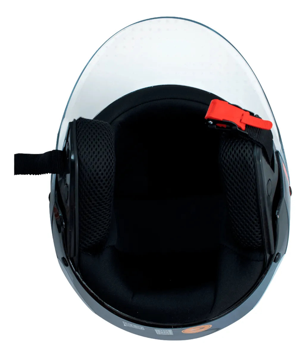 – Viseira transparente em policarbonato, com proteção anti-risco;