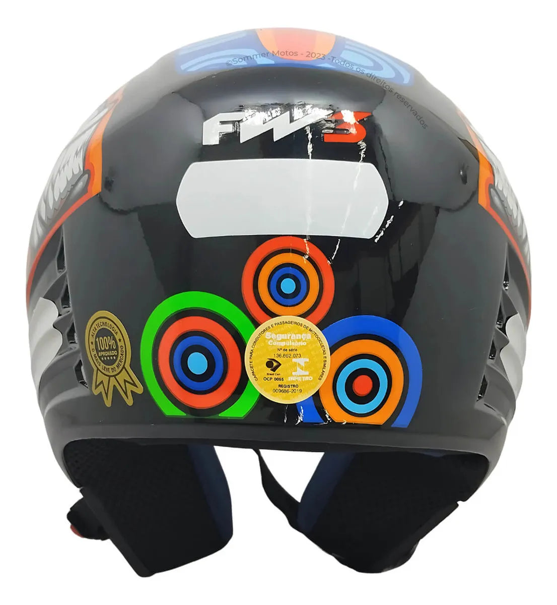 Os produtos fabricados pela FW3 são caracterizados por uma boa relação custo-benefício, graças à combinação de conforto, leveza e design impressionante. Cada capacete garante segurança devido à alta tecnologia aplicada nos processos de fabricação, bem como um estilo único que permitirá que você se destaque em cada andar.nnMaior conforto e segurança no seu andarnEste capacete aberto lhe dará conforto e uma sensação de liberdade em cada quilômetro que você percorra. Graças ao seu design, você terá um amplo campo de visão e audição, o que lhe permitirá ficar atento aos fatores externos.nnUma viseira que protege você a cada passonCom a sua viseira simples você desfrutará de viagens agradáveis e seguras, pois protege a sua visão de qualquer elemento do ambiente que possa lhe causar dano.nnRigidez e segurançanÉ feito com materiais de primeira qualidade que absorvem a energia e lhe conferem maior rigidez. No caso de um impacto, ele lhe dará a proteção que você precisa, amortecendo o golpe em um único ponto.nnBaixos impactosnSeu material interior de eps é acolchoado e elástico, permitindo maior amortecimento e absorção do impacto quando o capacete pára.