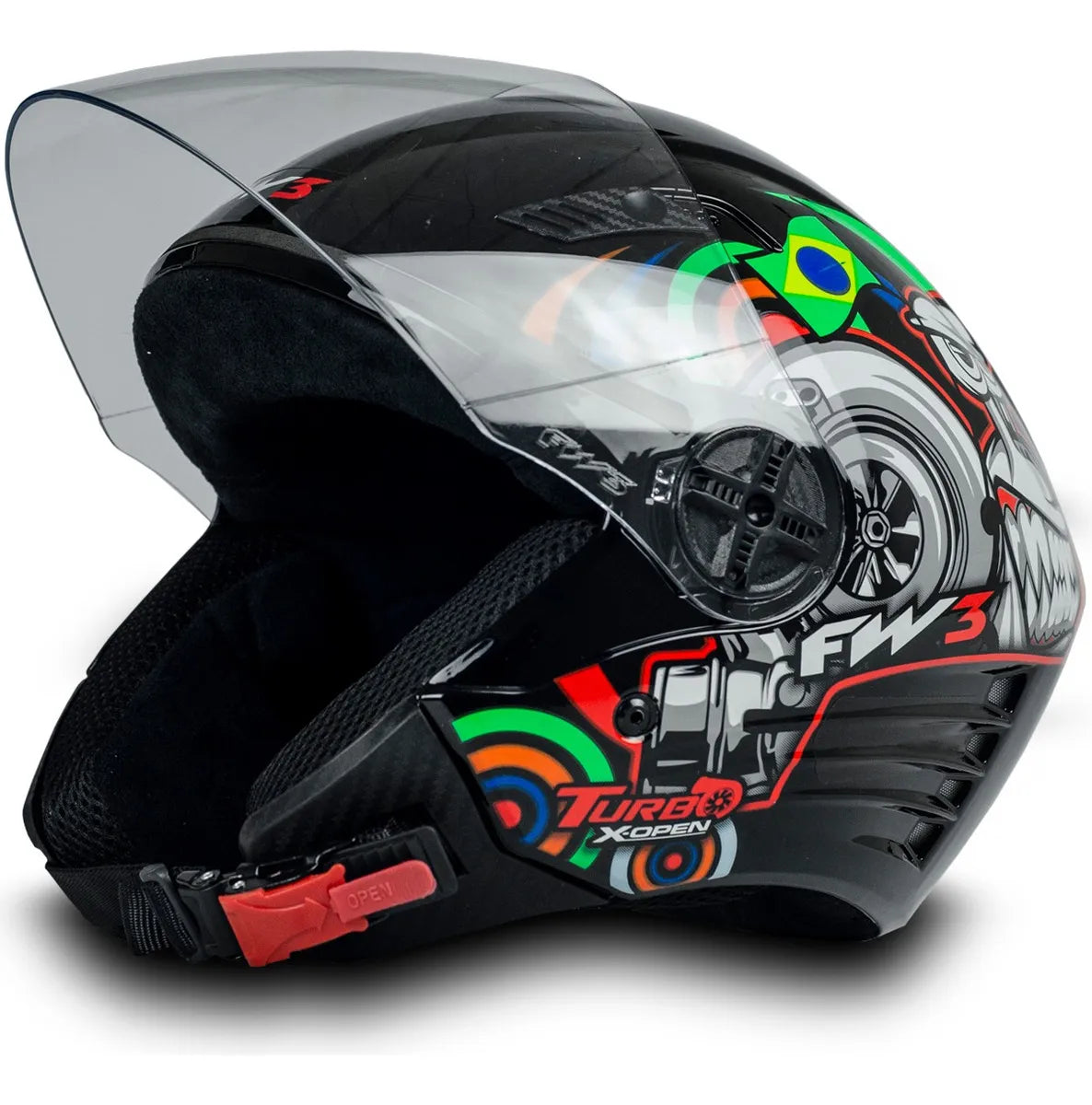 Capacete Fw3 Para Moto X Open Caracol Turbo Cor Preto
