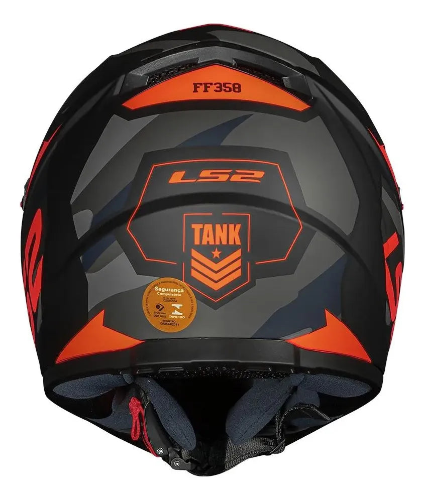 Capacete LS2 FF358 Tank Camuflado / Preto e laranja