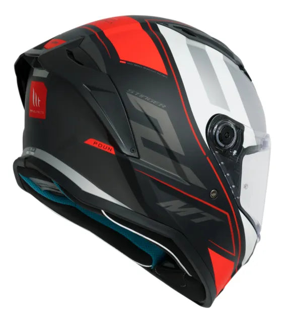 Capacete MT Stinger 2 é um capacete esportivo que se destaca pelo fato de todos os seus elementos serem facilmente desmontados e substituídos. É equipado com o sistema de troca rápida de viseira MT-QVSS e supera a norma de segurança ECE 22.06.