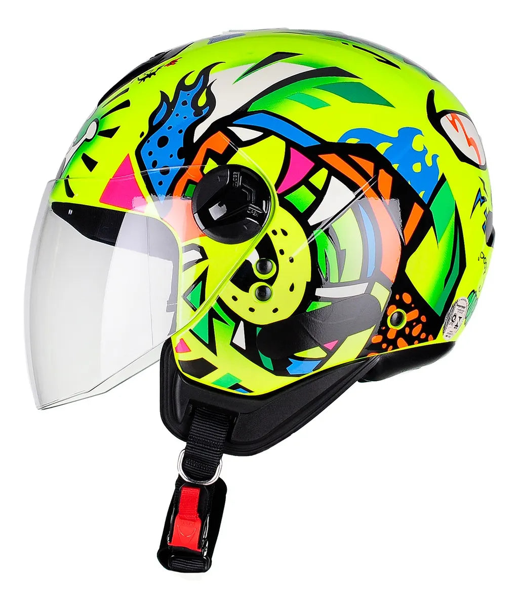 O modelo Freeway é um capacete aberto ideal para uso urbano. Para enfrentar a correria do dia a dia com conforto e praticidade, nada melhor do que a viseira com extenso campo de visão e o grafismo em decal com verniz protetor. A viseira possui um sistema de troca rápida para facilitar a manutenção do produto. Além disso, temos uma ampla linha de viseiras metalizadas para você acelerar com estilo!