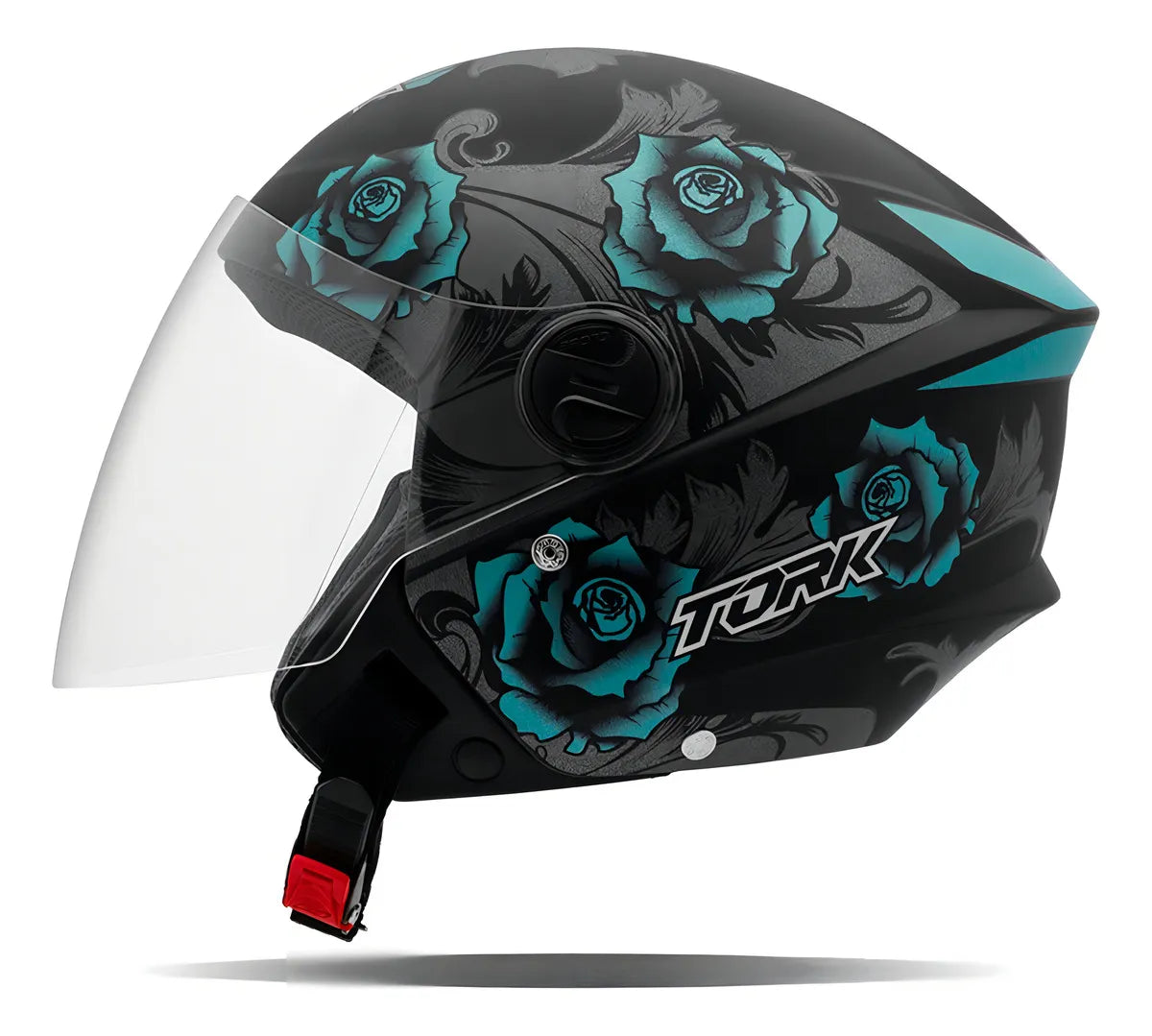 Capacete Tork New Three Flowers Preto Fosco e Azul
