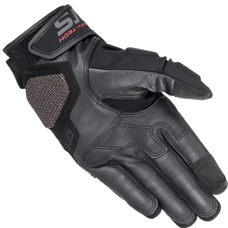 Parte superior da mão construída com uma mistura de Stretch, poliamida e com reforços em aramida essa combinação garante flexibilidade, conforto e durabilidade. O slider superior na articulação é fixado sem costura e oferece proteção contra impactos.