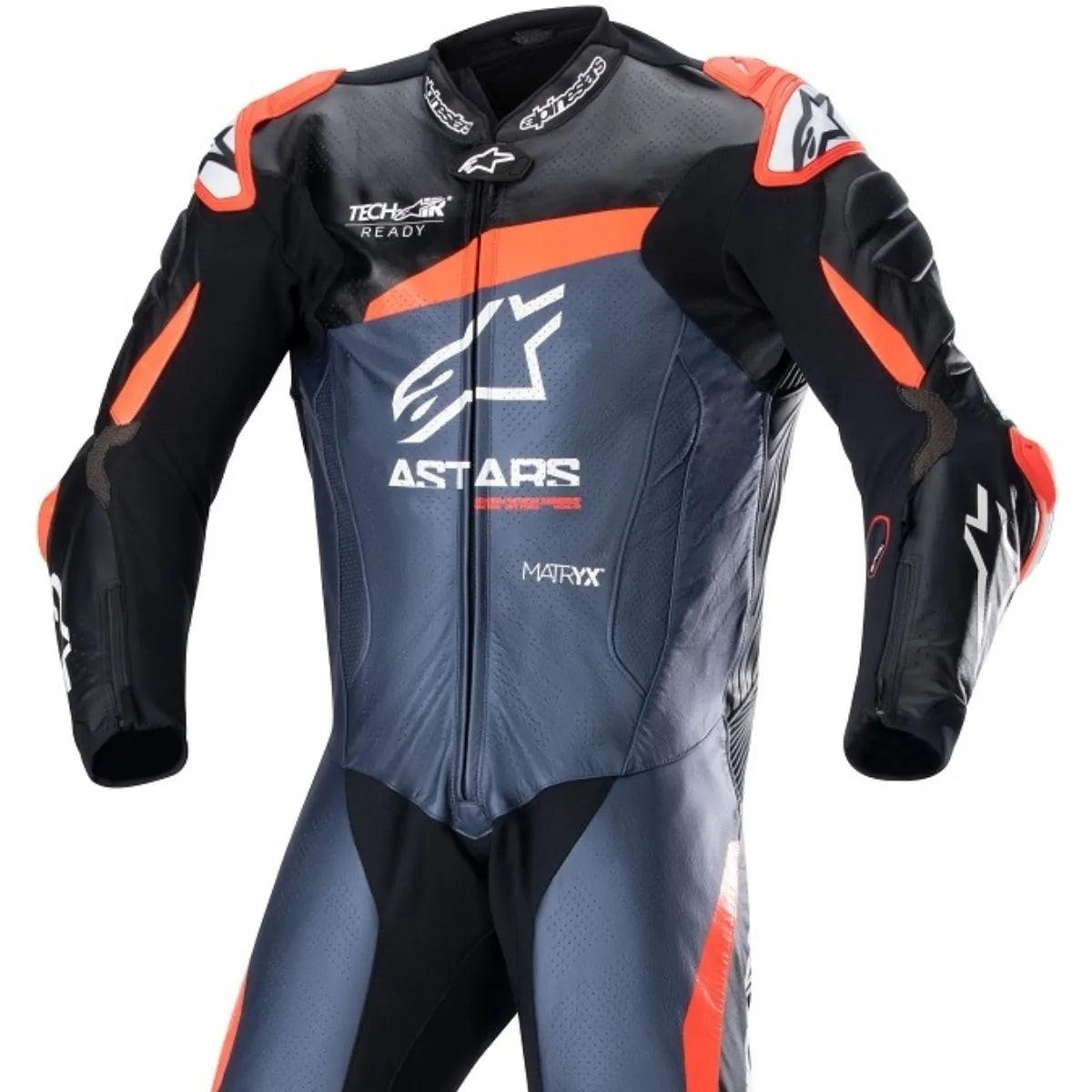 Macacão Alpinestars GP Plus V4 1 Peça – Preto/Azul/Vermelho Fluor