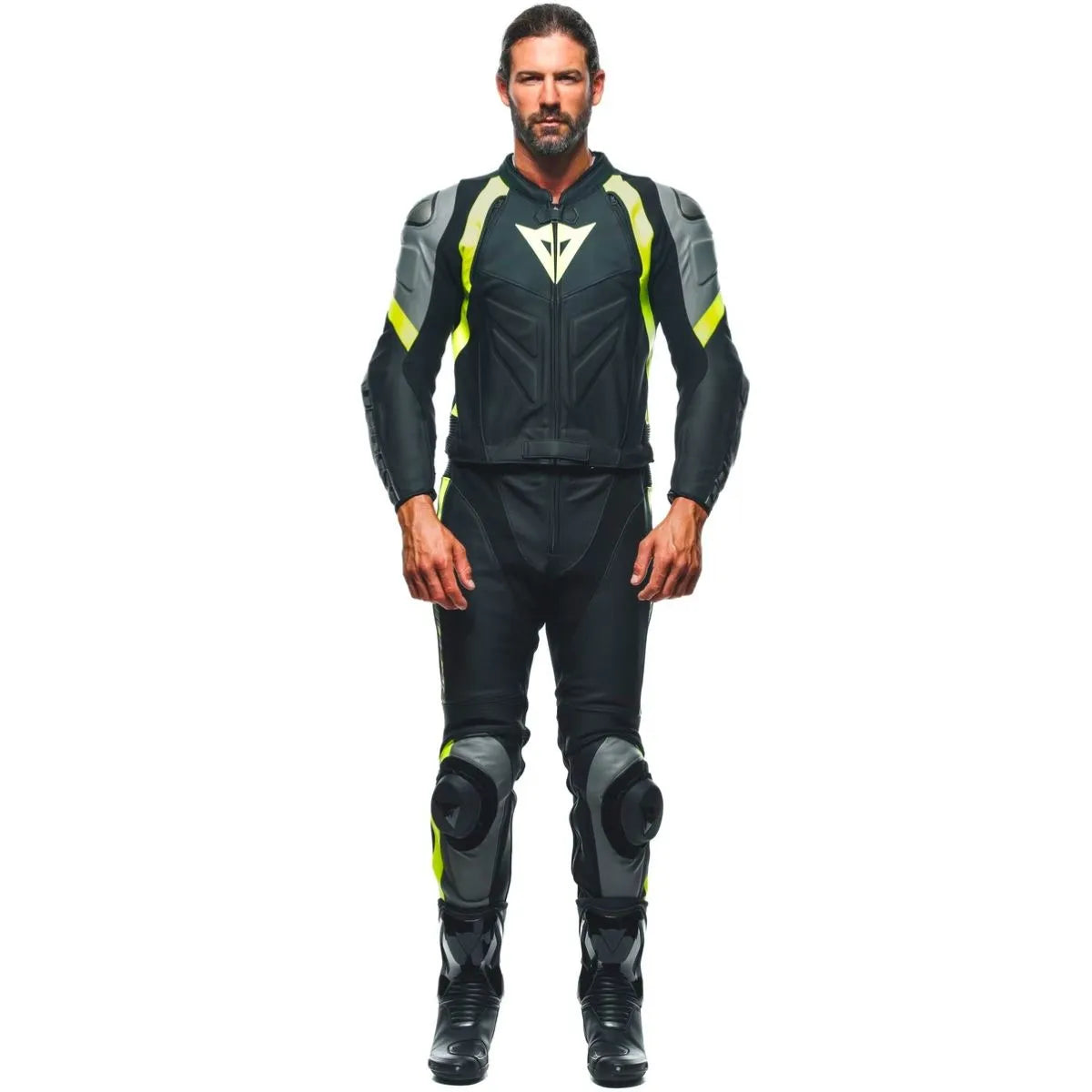 Macacão Dainese Avro 4 Div 2 Peças – Preto/Cinza/Amarelo Fluor