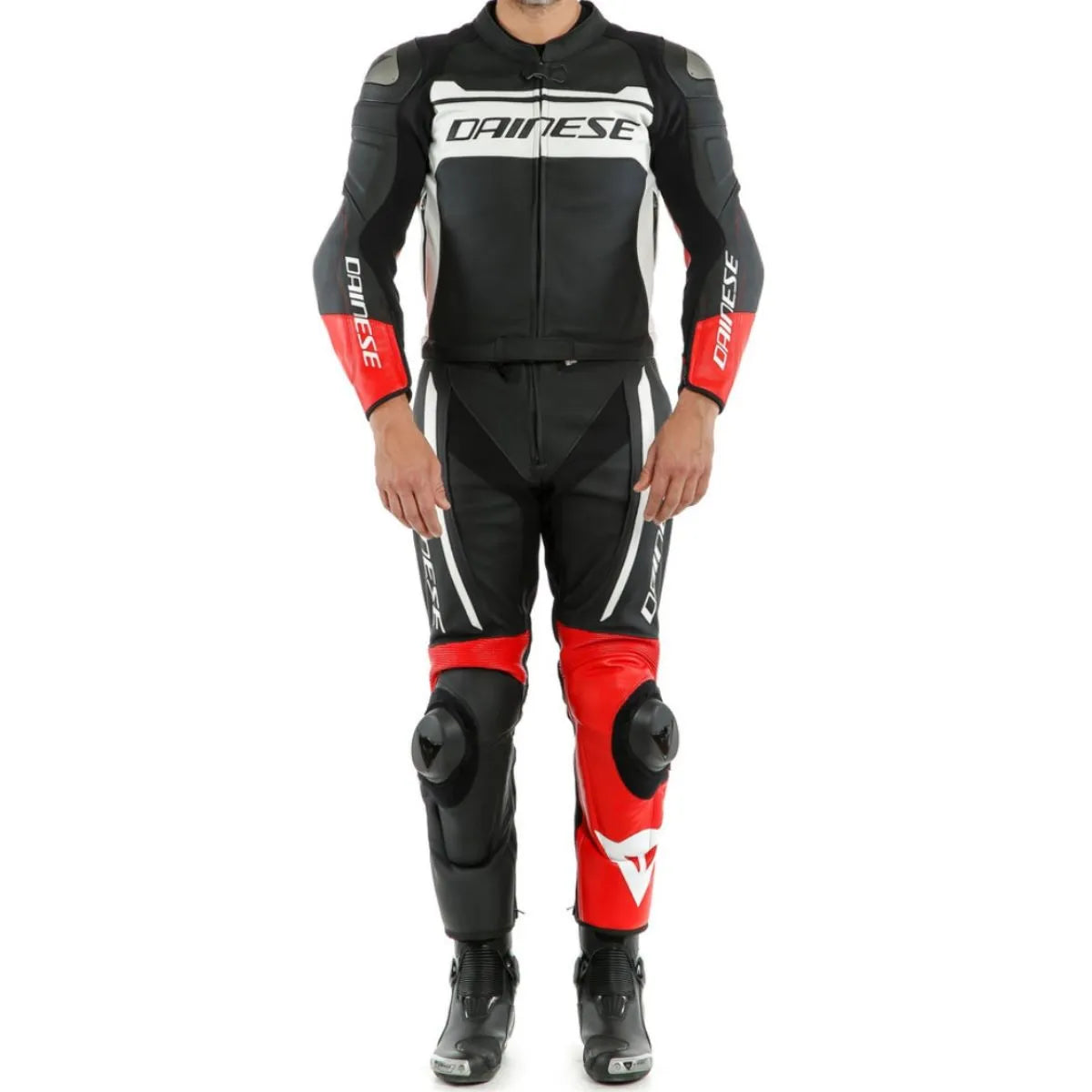 Macacão Dainese Div Mistel 2 Peças – Preto/Branco/Vermelho Fosco