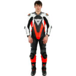 Macacão Dainese Avro 4 Div 2 Peças - Preto/Branco/Vermelho Fluor