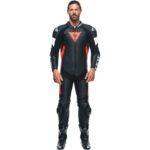 Macacão Dainese Tosa Perfurado 1 Peça – Preto/Branco/Vermelho Fluorescente