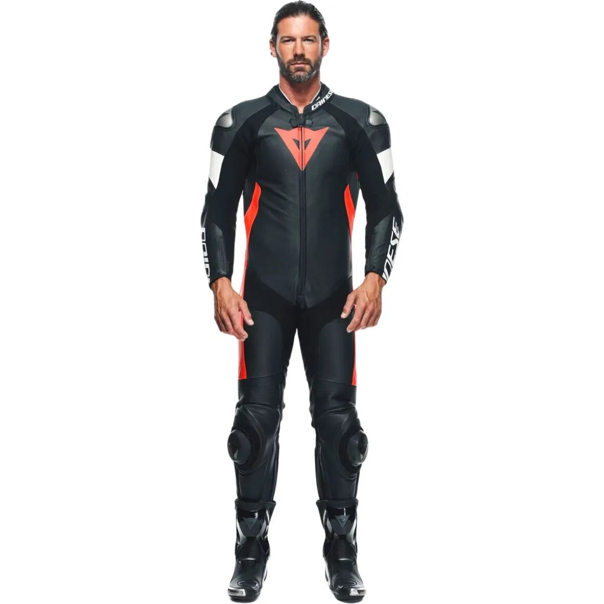 Dainese Tosa de peça única com certificação CE EN 17092 feito de couro Tutu perfurado premium para temperatura otimizada em dias quentes. O ajuste Dainese clássico é fino e ajustado, ao mesmo tempo em que oferece grande liberdade de movimento devido às inserções de tecido elástico S1 na parte interna do braço, virilha e áreas traseiras da perna. As inserções de tecido elástico biaxial nas costas, bem como os trechos elásticos nos joelhos e nas omoplatas, são projetados para garantir simultaneamente que toda a pele esteja protegida, além de máxima flexibilidade e liberdade de movimento.
