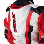 – Couro em elastano nas costas para maior conforto no posicionamento de pilotagem;